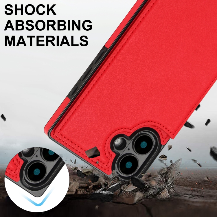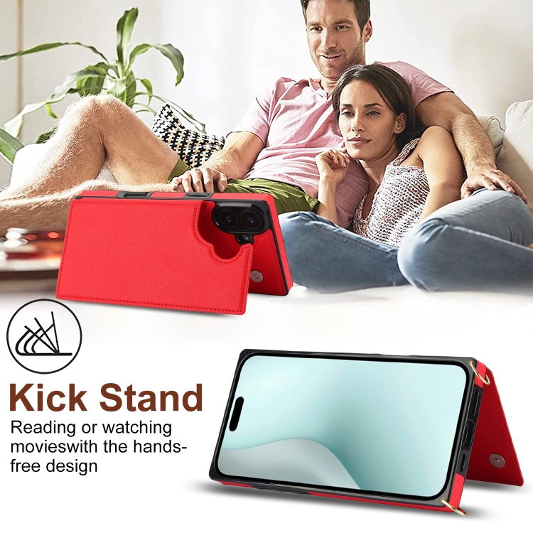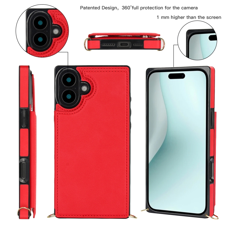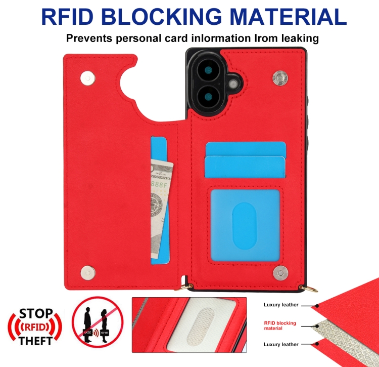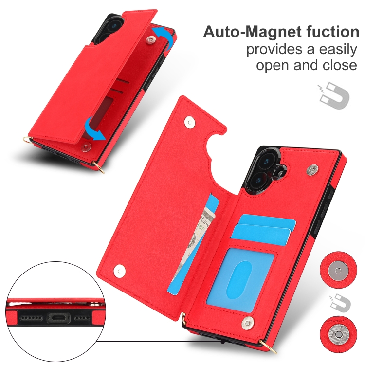 Funda para Teléfono Tipo Billetera iPhone 16 con Tapa y Hebillas Cuadradas (Rojo)