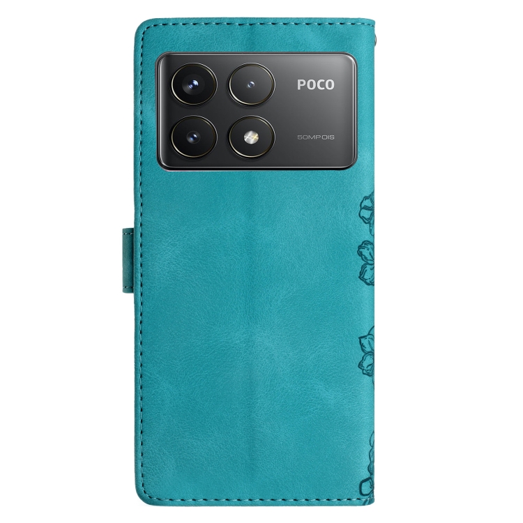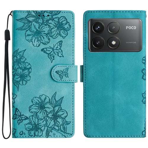 Funda para Teléfono Xiaomi Poco F6 Pro con Diseño de Mariposa y Flor de Cerezo En Relieve de Pu (Verde)