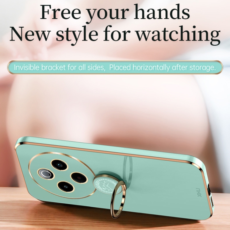 Funda para Teléfono Xinli Straight Edge 6D Electroplate TPU con Soporte para Anillo para Vivo Y300 Pro (Rosa)
