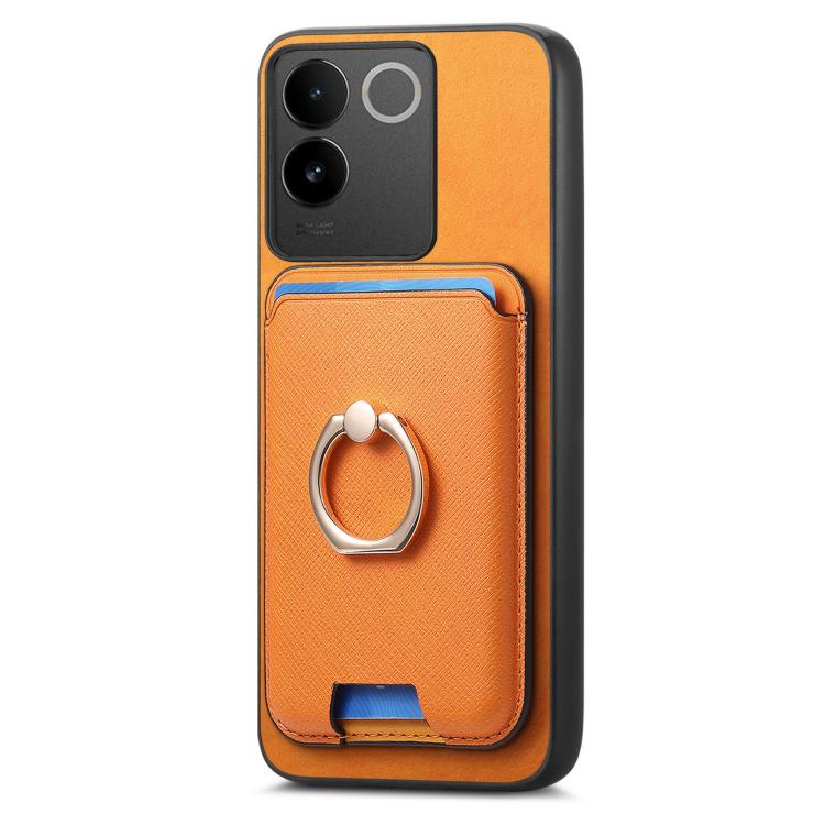 Funda para Vivo S17 / S17 Pro / V29 Pro 5G con Anillo de Cuero Retro Cruzado y Ranuras para Tarjetas (Amarillo)