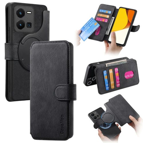 Funda para Vivo Y35 5G Neo Magsafe Rfid Antirrobo de Cuero Retro para Teléfono (Negro)