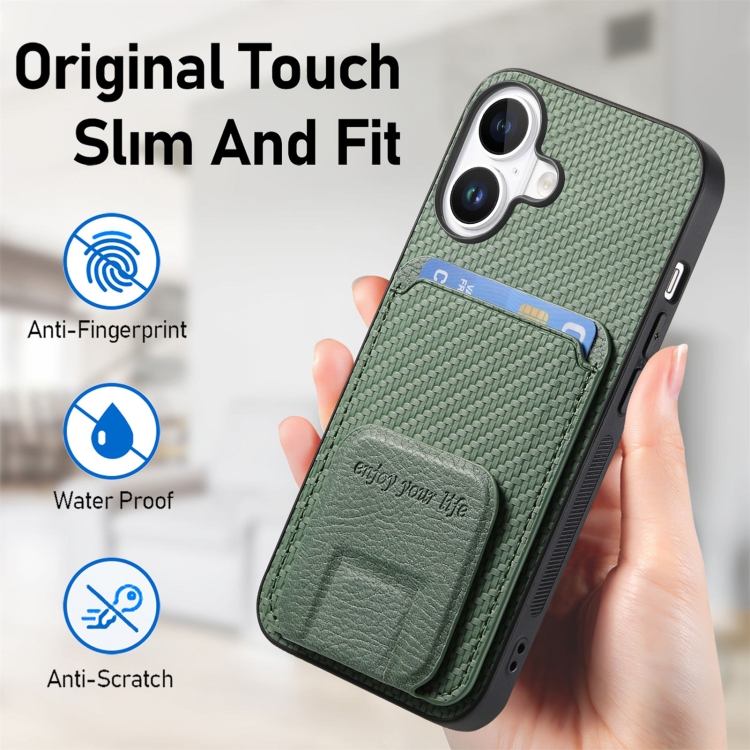 Funda plegable con soporte para tarjetas de fibra de carbono iPhone 16 Plus (Verde)