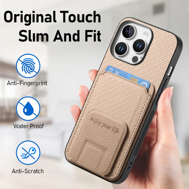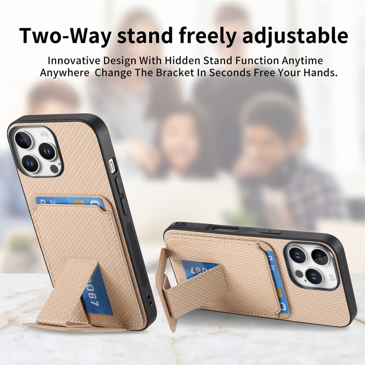 Funda plegable con soporte para tarjetas de fibra de carbono para iPhone 16 Pro (Caqui)