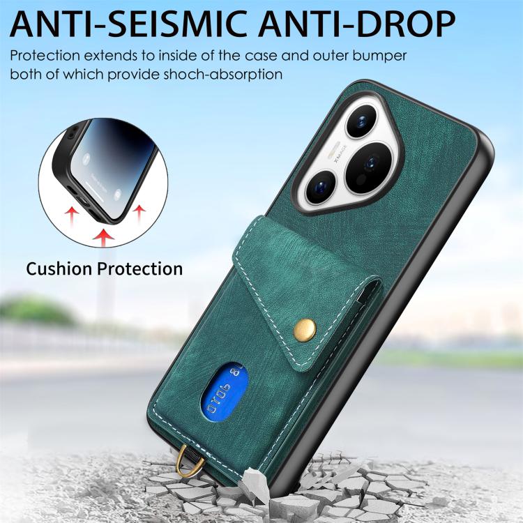 Funda plegable de cuero con correa para Huawei Pura 70 Ultra, estilo retro, tipo billetera (verde)
