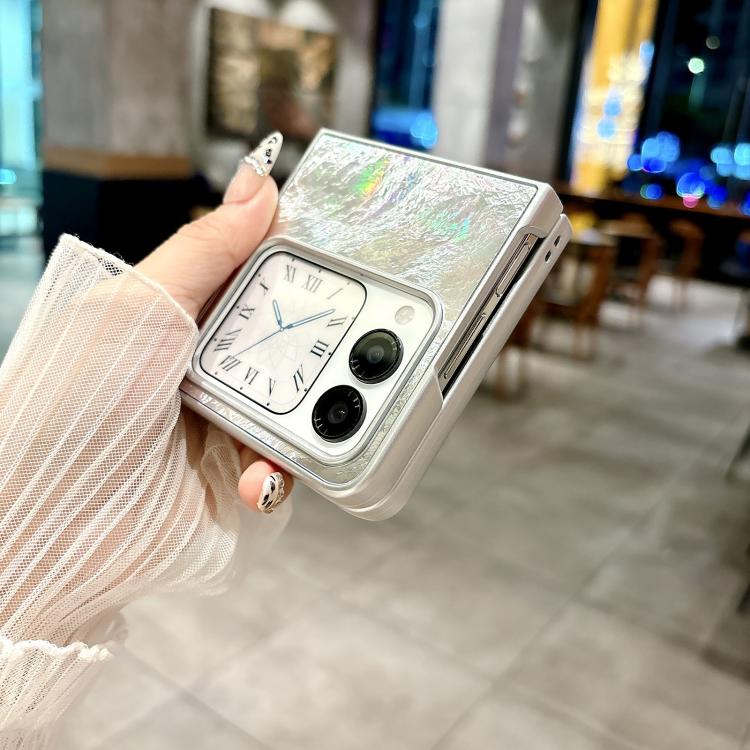 Funda Plegable Huawei Nova Flip Silver Edge con Hilo de Plumas (Plateada)