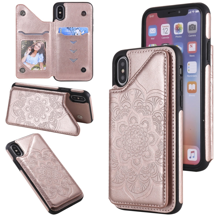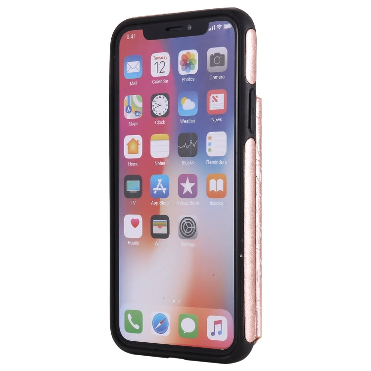 Funda Protectora para iPhone X / Xs Estampado de Flores Soporte Ranuras y Marco de Fotos (Oro Rosa)