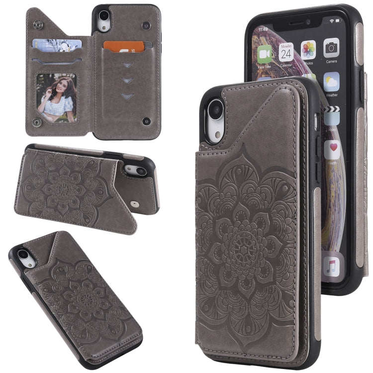 Funda Protectora para iPhone Xr con Soporte Ranuras Tarjetas y Marco de Fotos (Gris)
