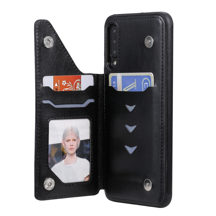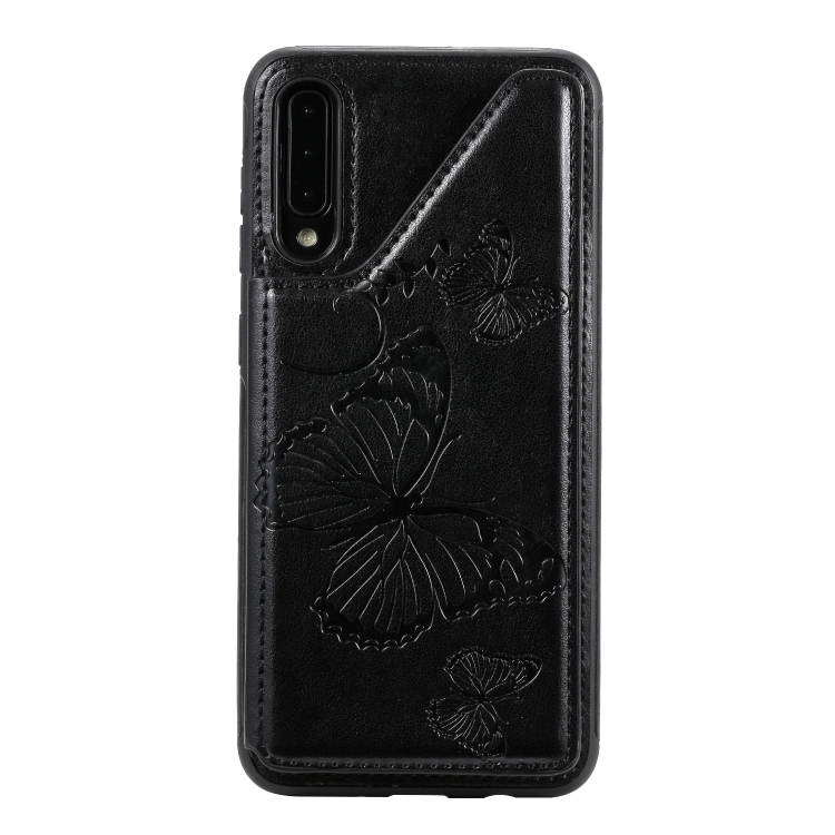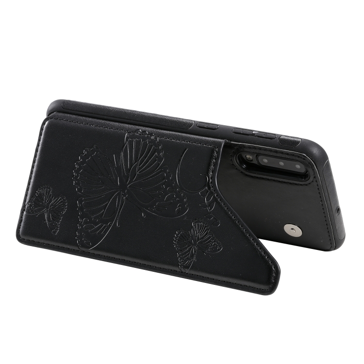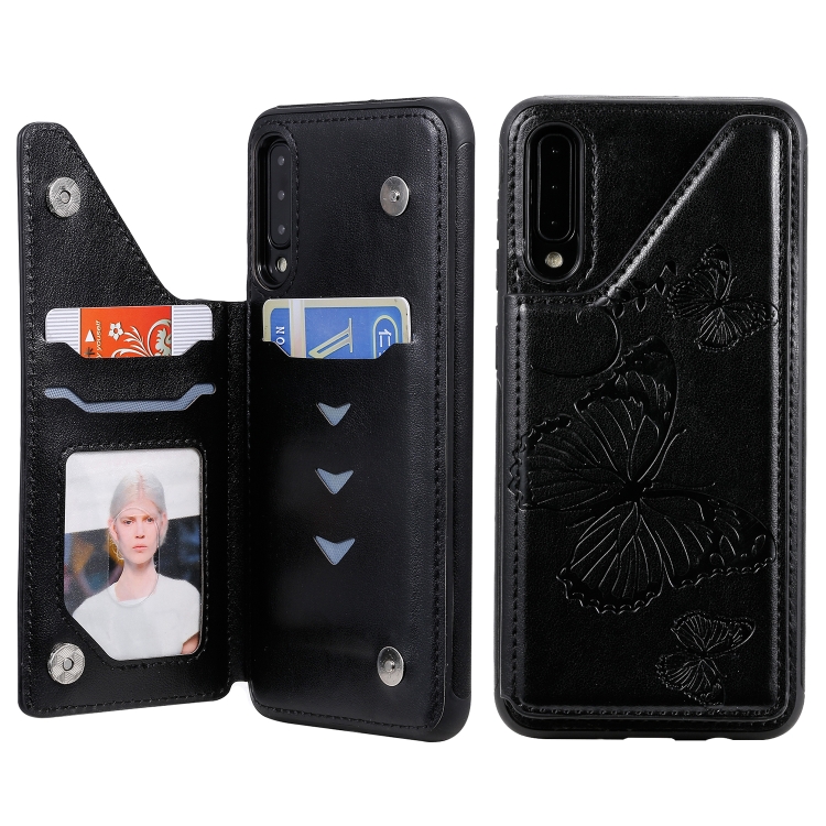 Funda Protectora Galaxy A50 Patrón Mariposa Soporte Ranuras Tarjetas Marco Fotos (Negro)