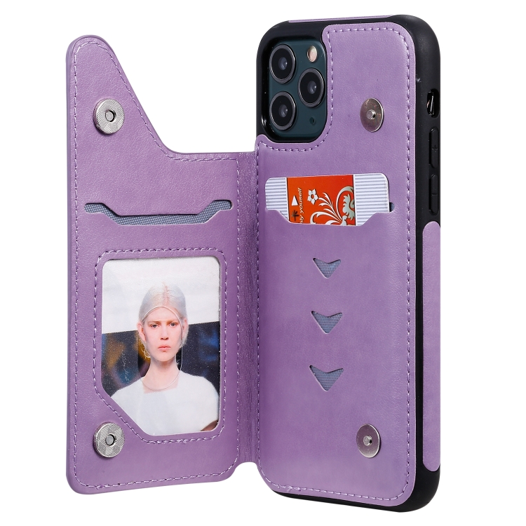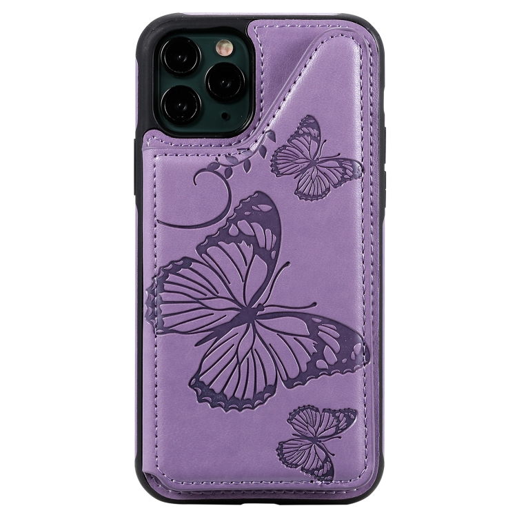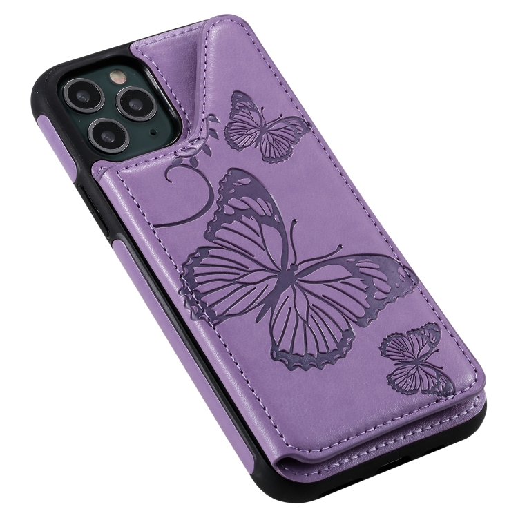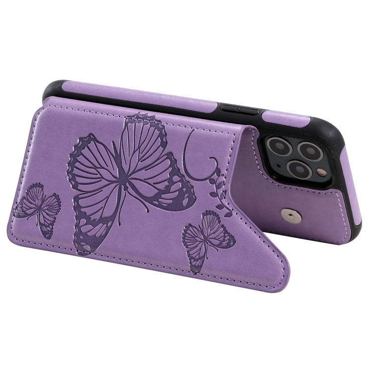 Funda Protectora iPhone 11 Pro Patrón Mariposa Soporte Tarjetas Marco Fotos (Púrpura)