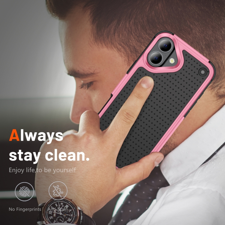Funda Protectora para iPhone 16 de PC y TPU a Prueba de Golpes (Rosa y Negro)