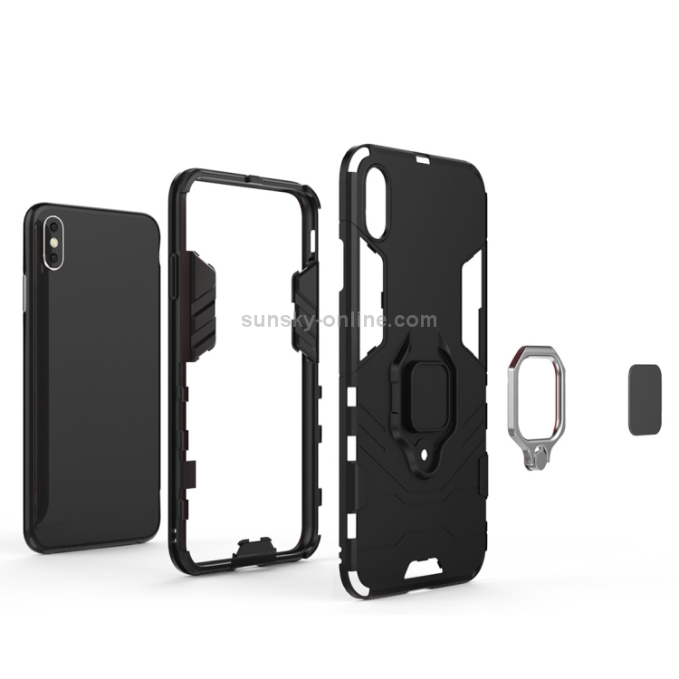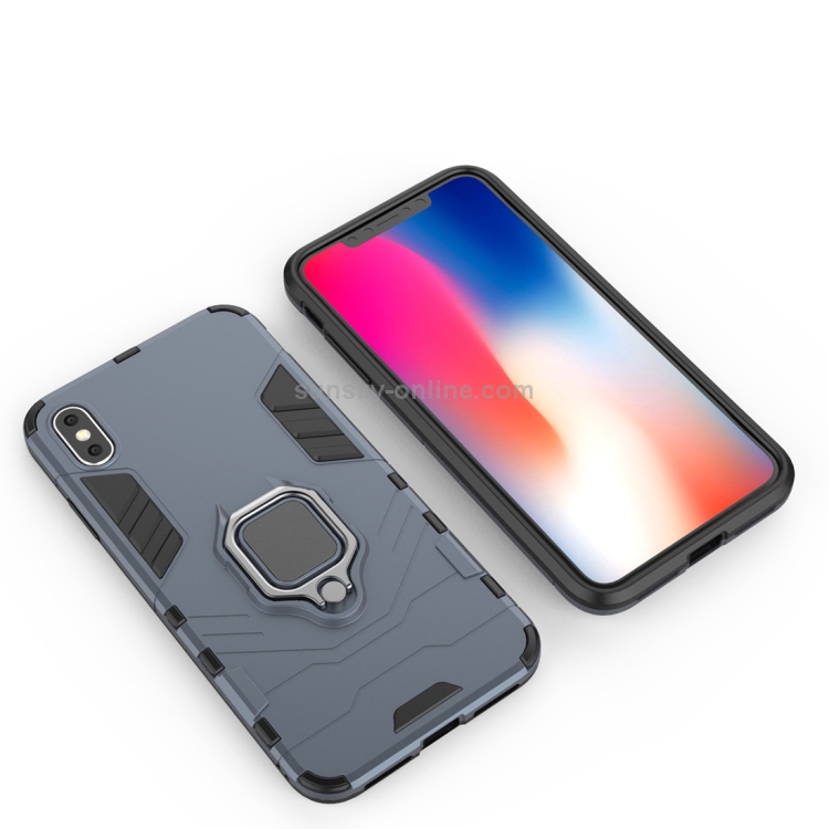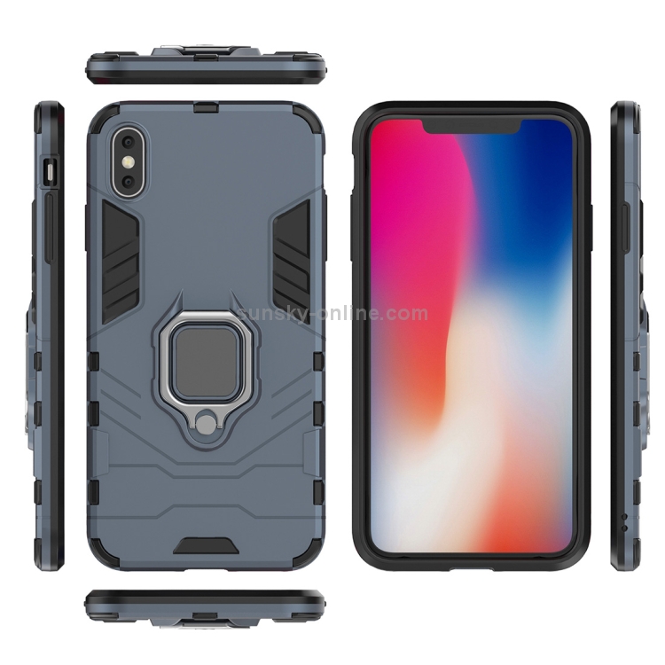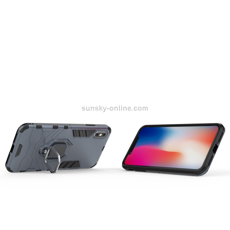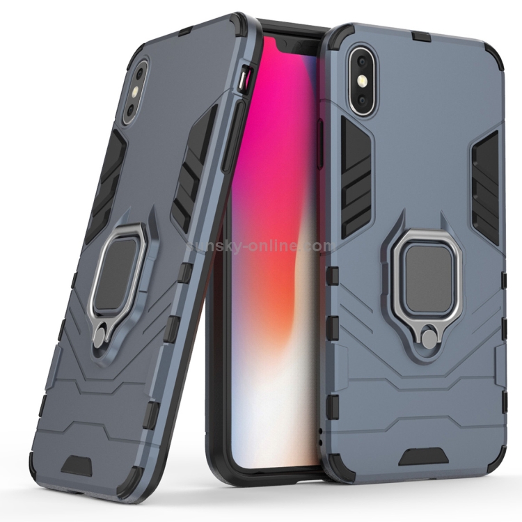 Funda Protectora para iPhone Xs Max PC + TPU con Soporte de Anillo Magnético (Azul Marino)