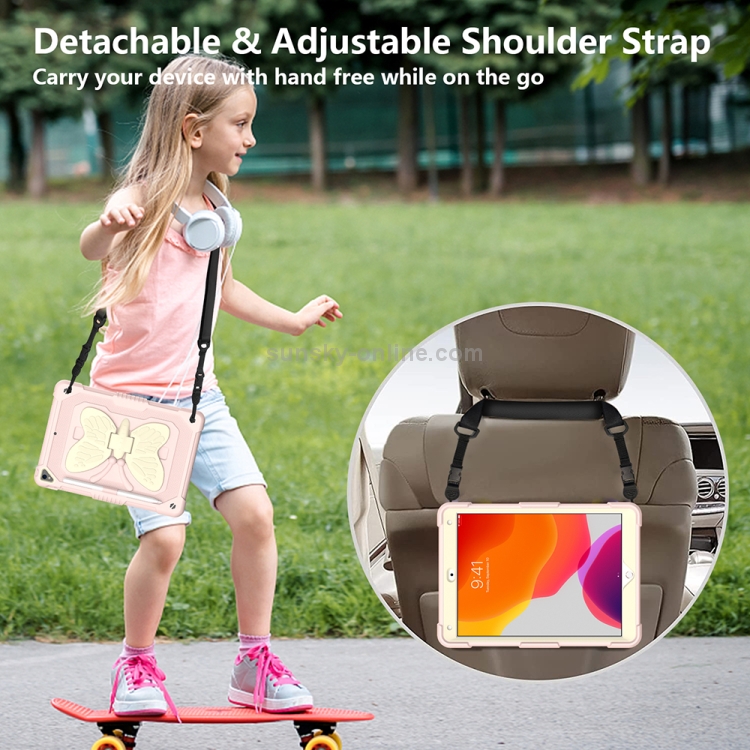 Funda Protectora Silicona para iPad 10.2 2021 2020 2019 y Air 3 10.5 Inch con Soporte Mariposa y Ranura Bolígrafo (Beige + Rose Pink)
