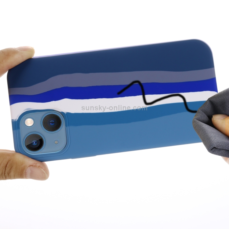 Funda Protectora Silicona Líquida Rainbow para iPhone 13 Mini (Azul)