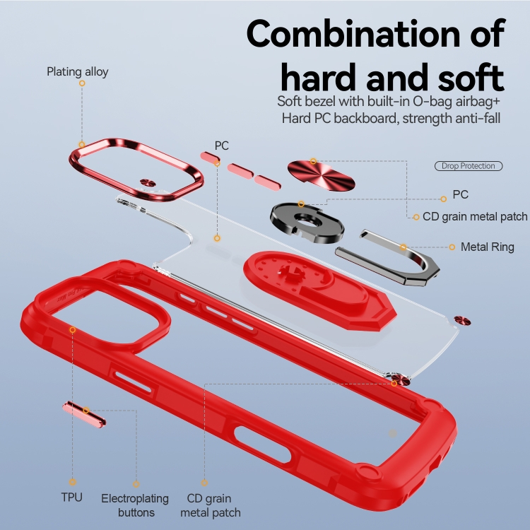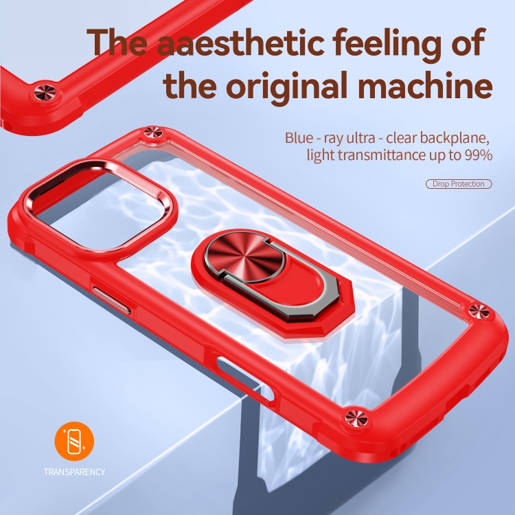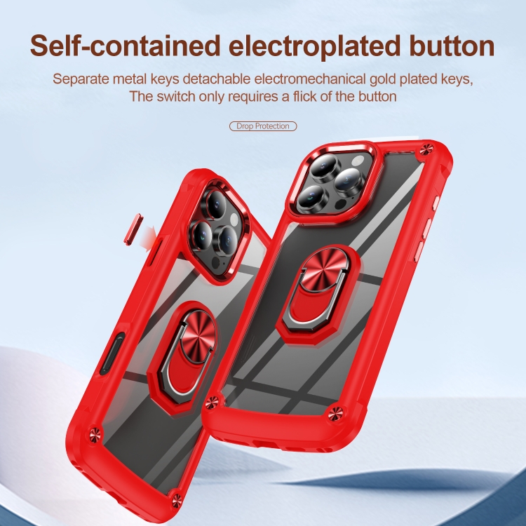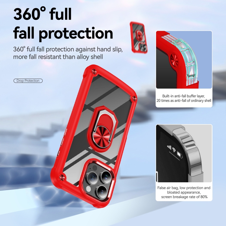 Funda Protectora de Lente TPU PC para iPhone 16 Pro Max con Soporte de Anillo (Rojo)