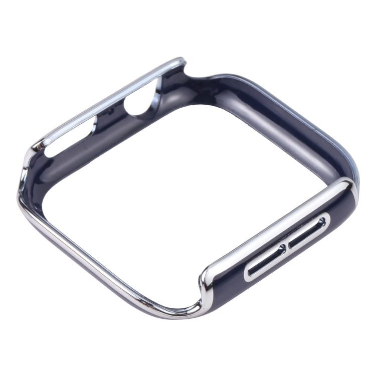 Funda Protectora PC Electrochaplating Doble Color para Apple Watch Series 7 6 SE 5 4 44mm (Borde Plata Fondo Azul)