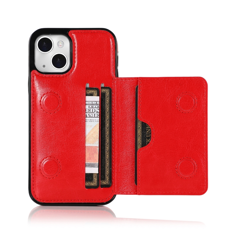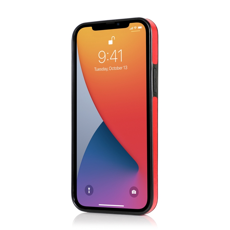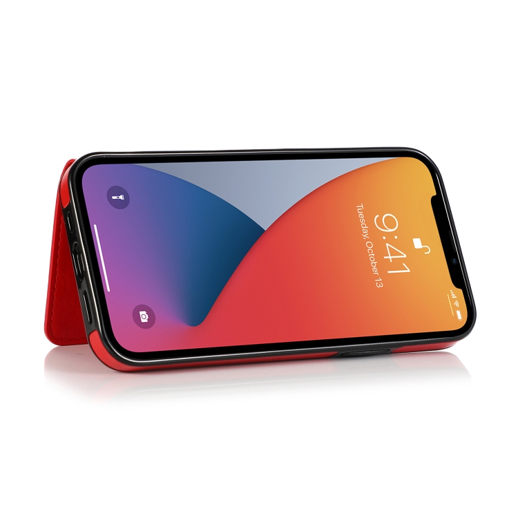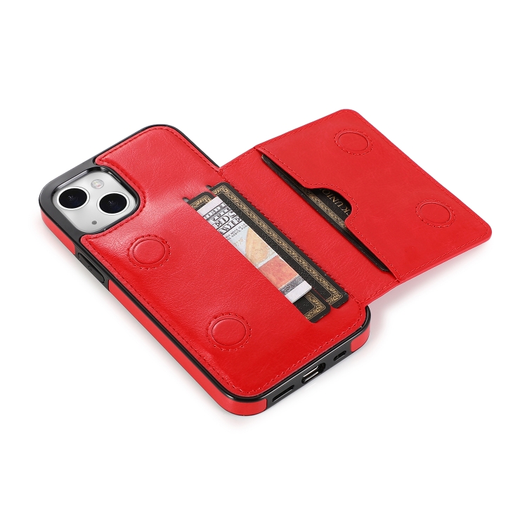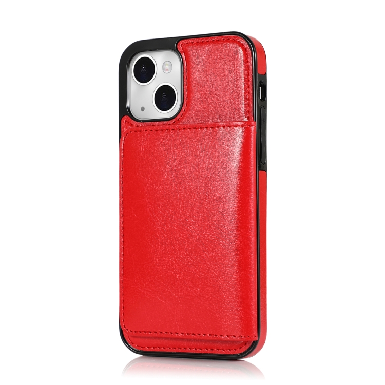 Funda Protectora PU + TPU para iPhone 13 Mini con Ranuras Tarjetas y Soporte (Rojo)