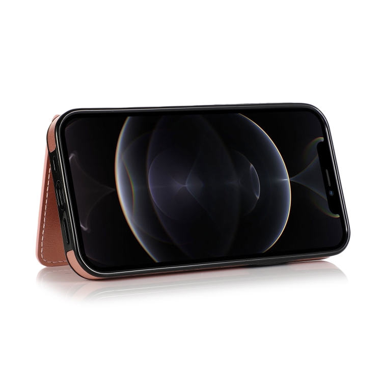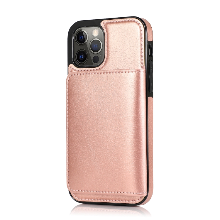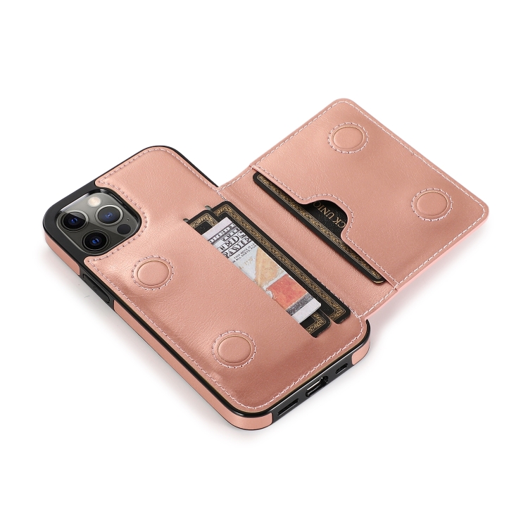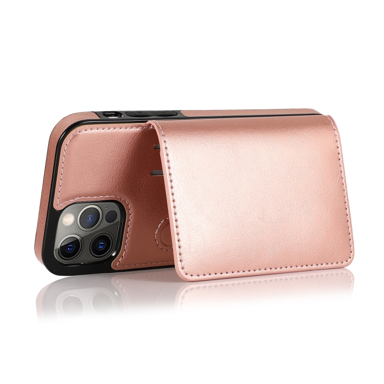 Funda Protectora PU + TPU para iPhone 13 Pro con Ranuras y Soporte (Oro Rosa)