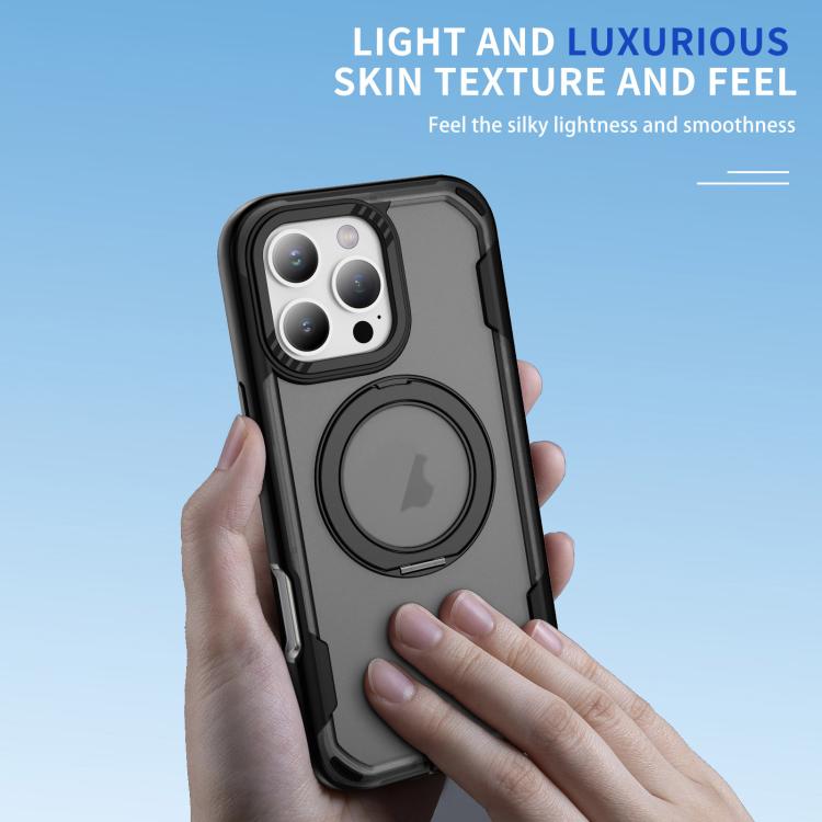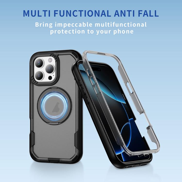 Funda protectora MagSafe para iPhone 16 Pro Max (negro + gris transparente)
