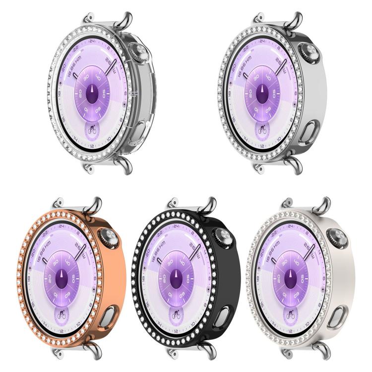 Funda protectora para Huawei Watch GT 6 de 41 mm con una sola fila de diamantes y media cobertura hueca para PC (negra)