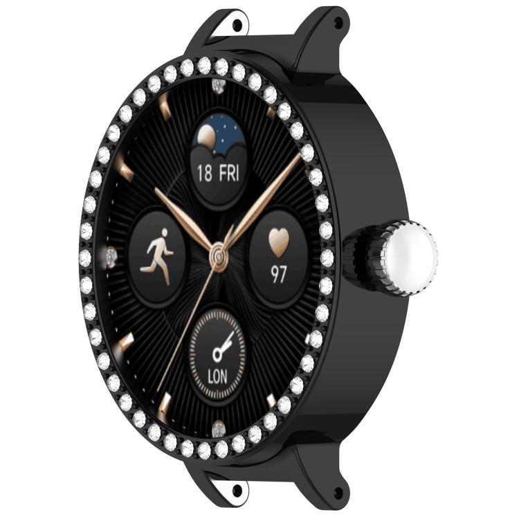 Funda protectora para reloj inteligente Honor Choice SAGA 2 con una sola fila de diamantes y media cobertura hueca para PC (negro)
