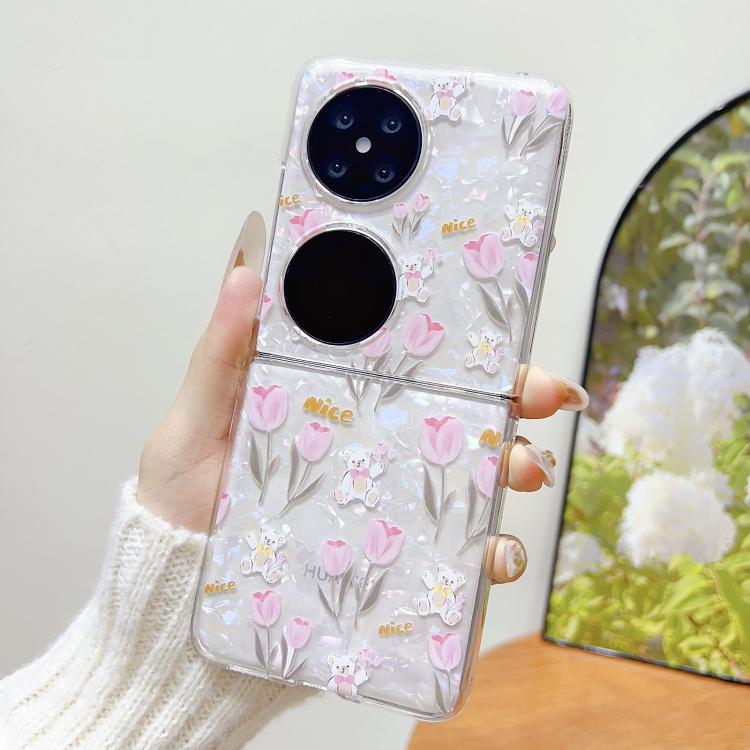 Funda Protectora Huawei P50 con Diseño de Flores y Textura de Carcasa de Bolsillo (Tulipán)