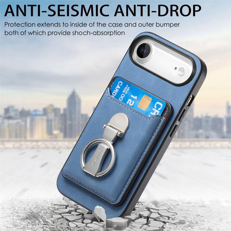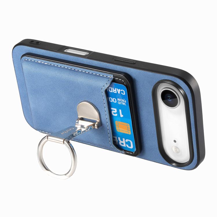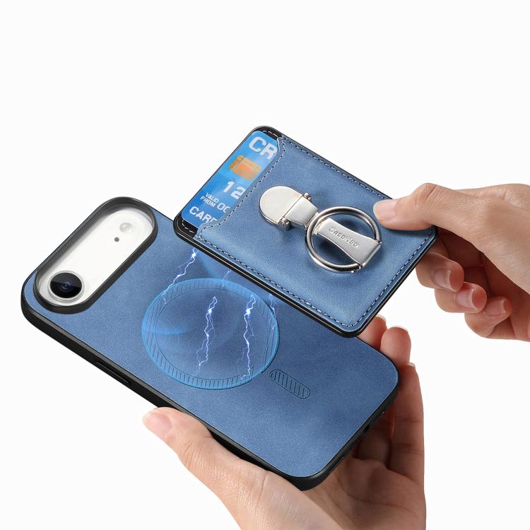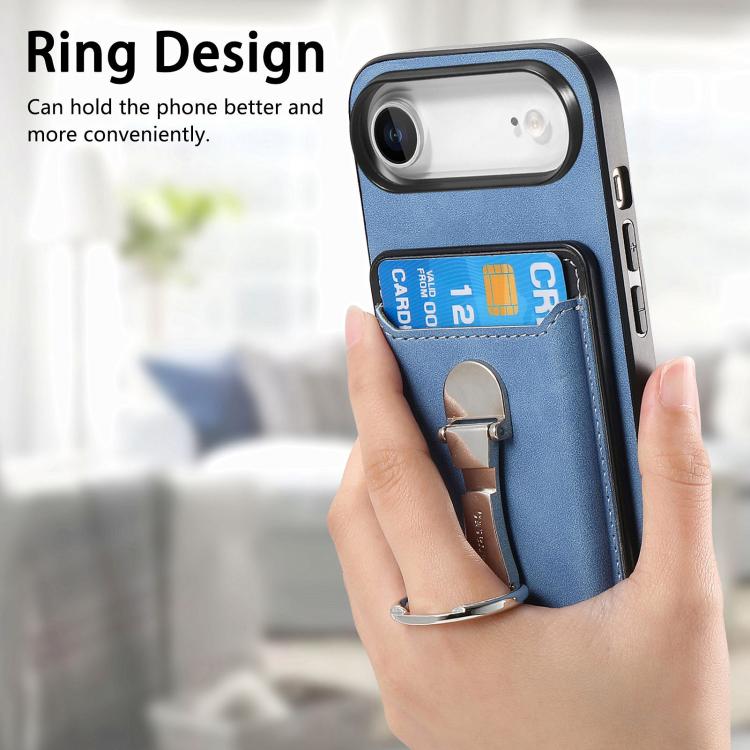 Funda retro plegable con anillo y tarjetero para iPhone Air, MagSafe (azul)