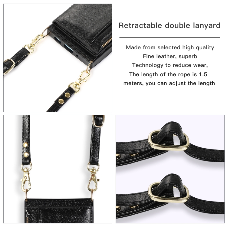 2. Ranuras para tarjetas multifuncionales, billetera, equipada con un cordón que se puede cruzar en diagonal, lo cual es conveniente para viajar.