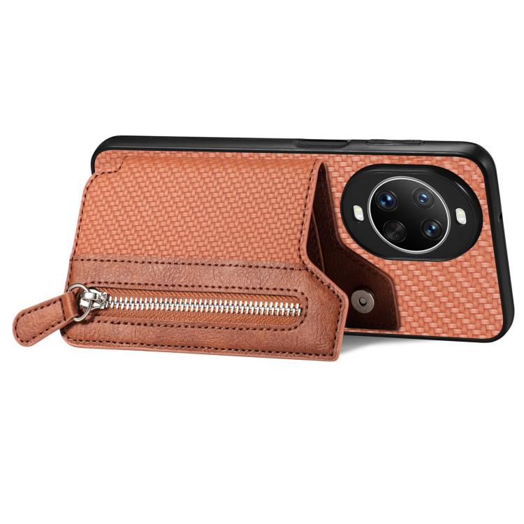 Funda tipo cartera con cremallera horizontal de fibra de carbono para Huawei Nova 14 (marrón)