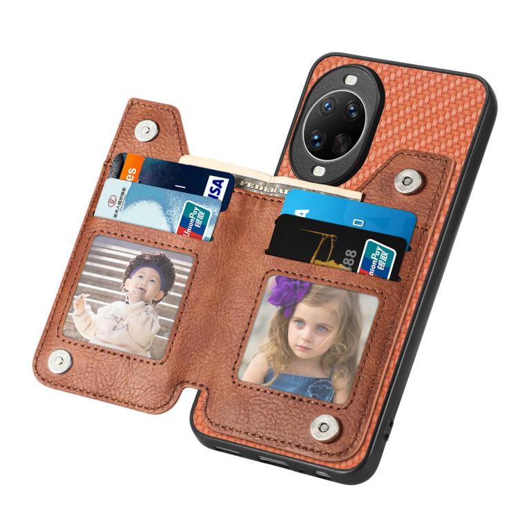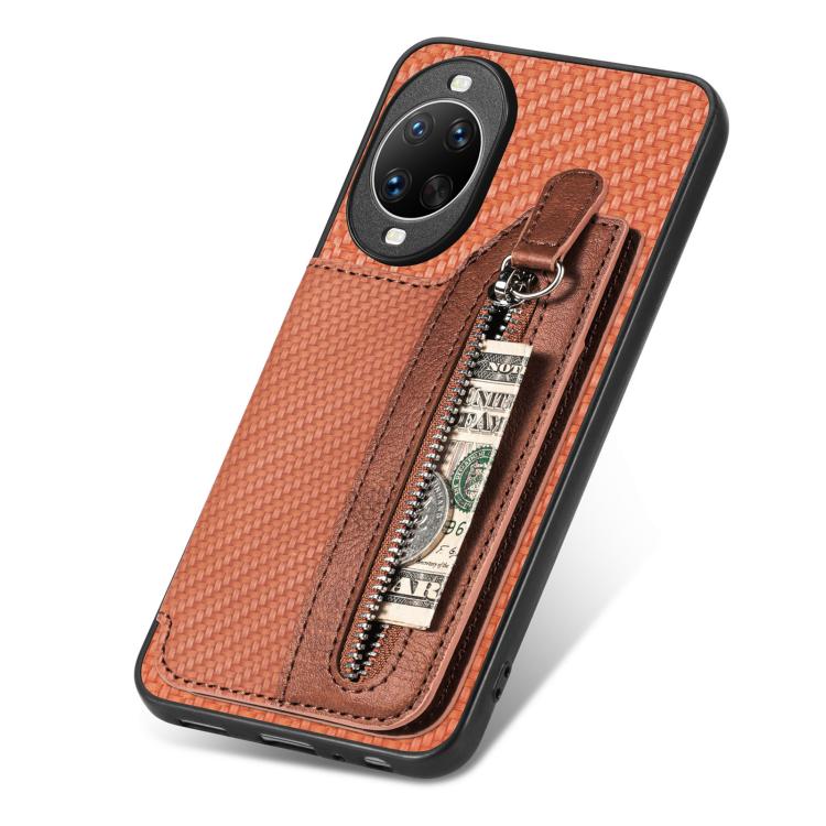 Funda tipo cartera con cremallera y tapa horizontal de fibra de carbono para Huawei nova 14 Ultra (marrón)