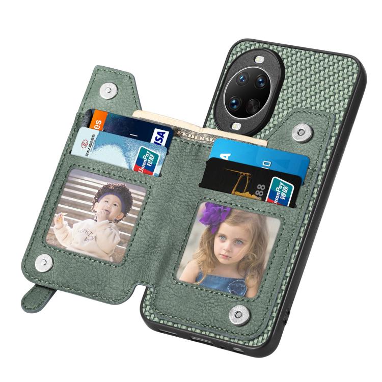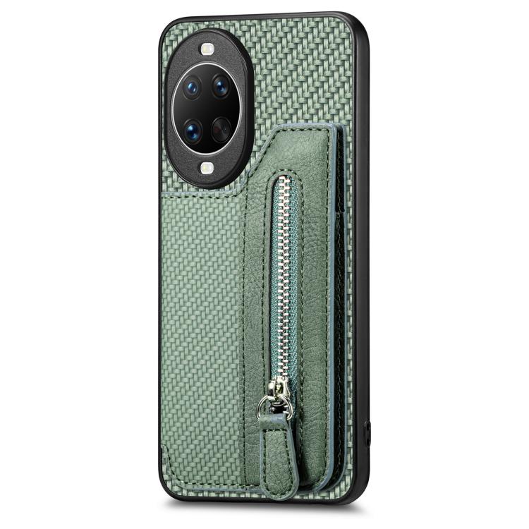 Funda tipo cartera con cremallera y tapa horizontal de fibra de carbono para Huawei nova 14 Ultra (verde)