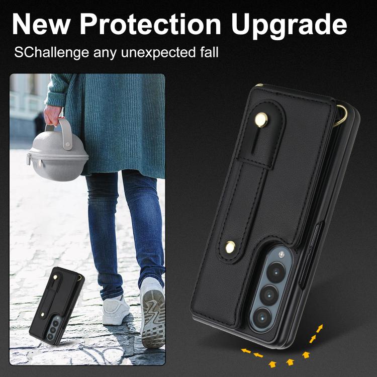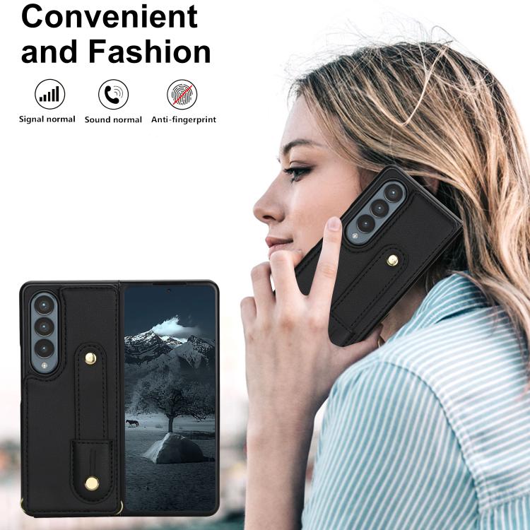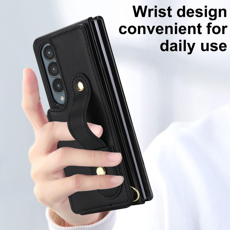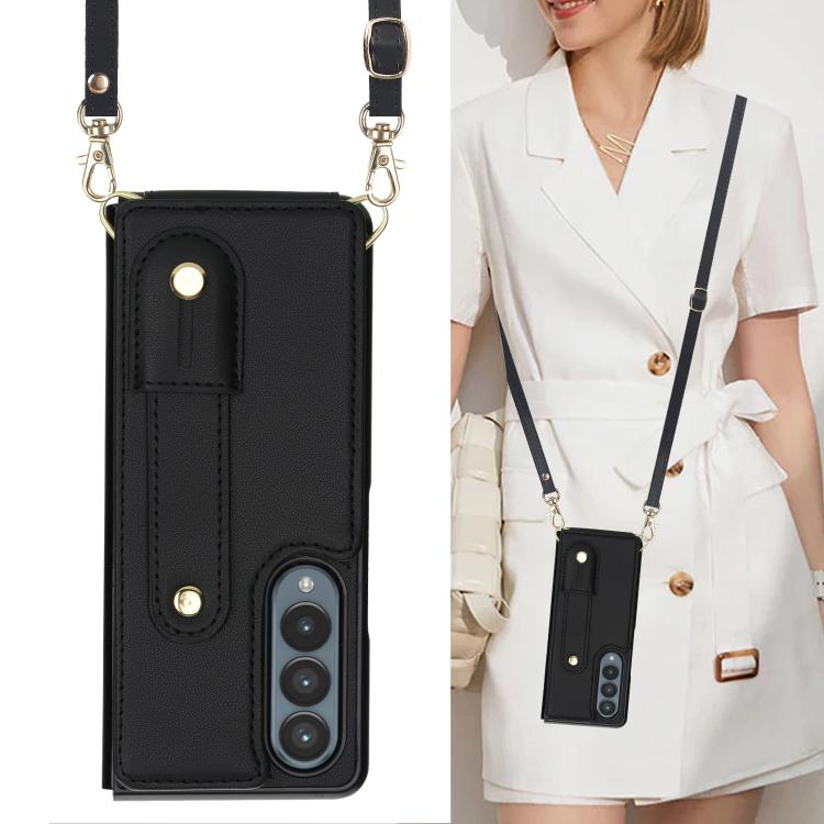 Funda tipo cartera con tapa vertical y correa para Samsung Galaxy Z Fold4 5G, con cordón largo (negro)