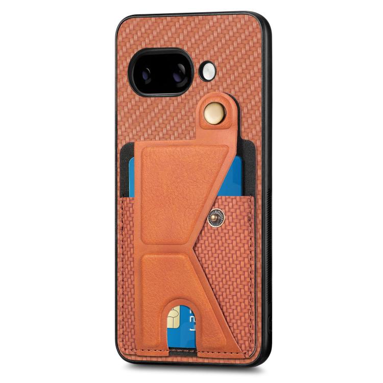 Funda Tipo Cartera Fibra de Carbono con Tarjetero en K para Google Pixel 9A (Marrón)