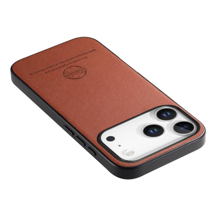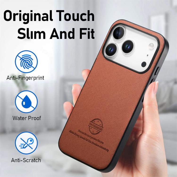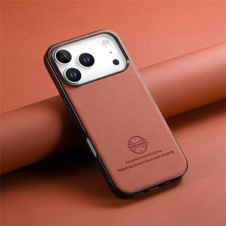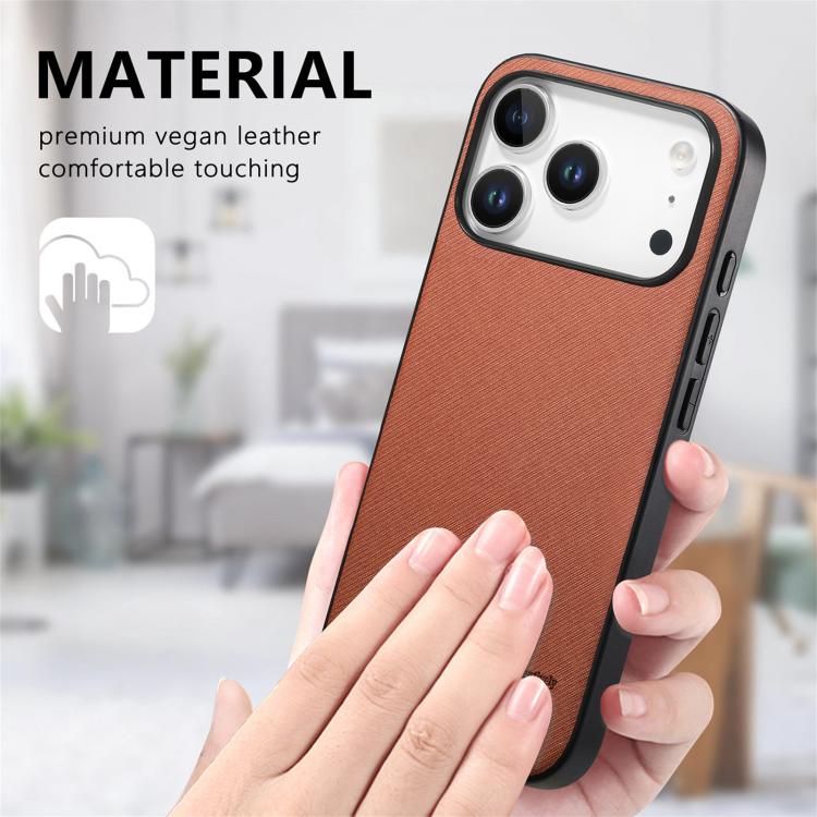Funda trasera de piel y tela sarga para iPhone 17 Pro (marrón)