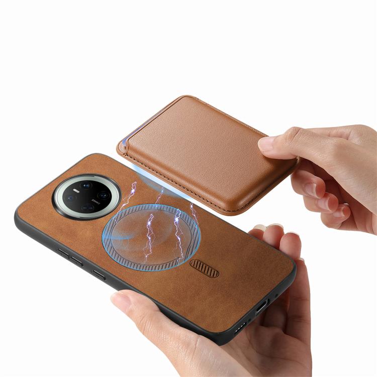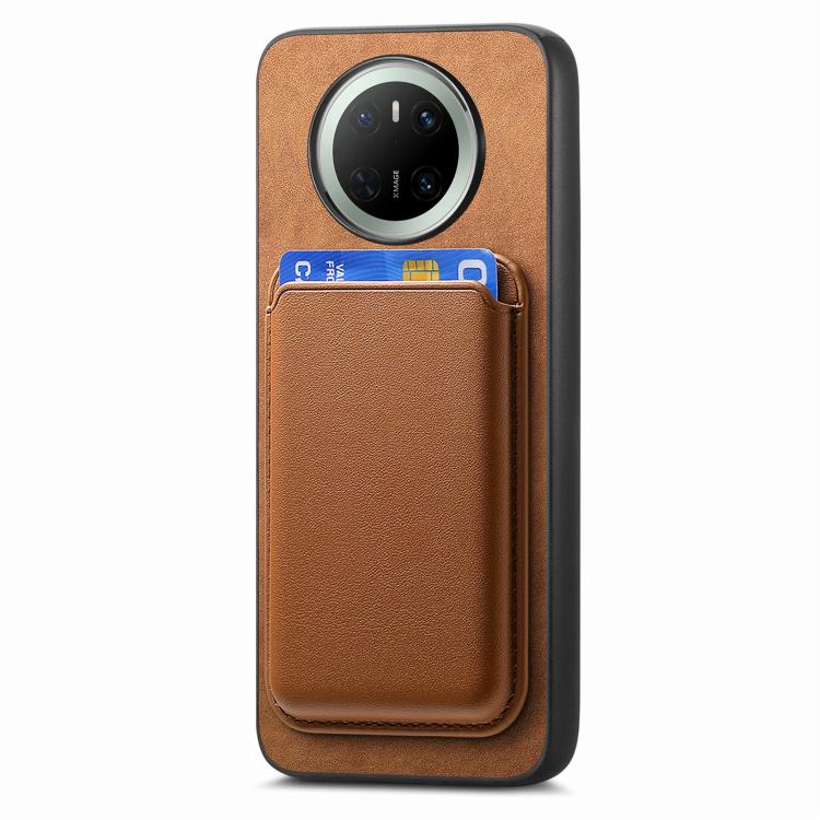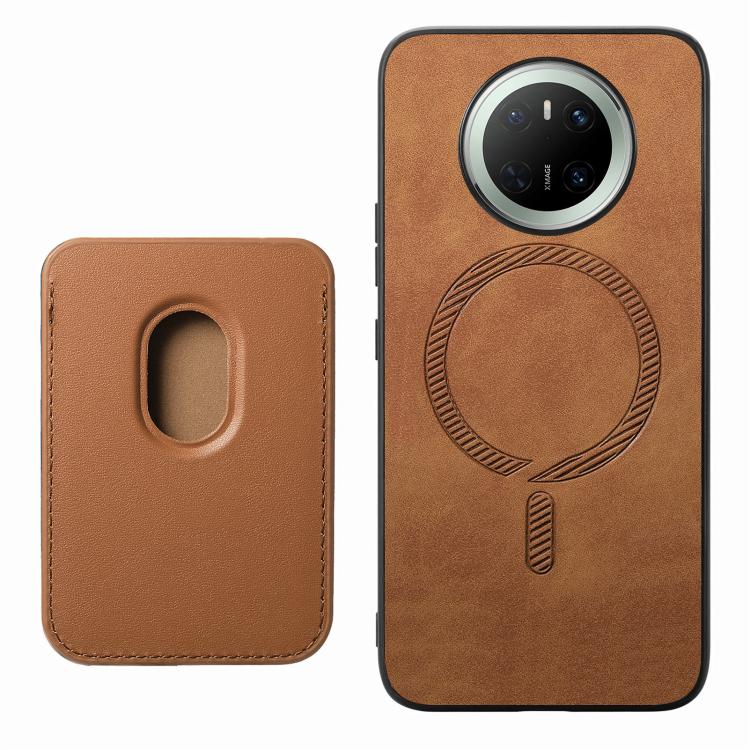Funda Trasera de PU con Tarjetero Magsafe para Huawei Mate 70 Pro (Marrón)