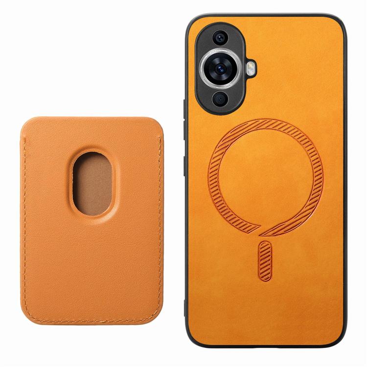 Funda Trasera de PU con Tarjetero Magsafe para Huawei Nova 12 (Amarilla)