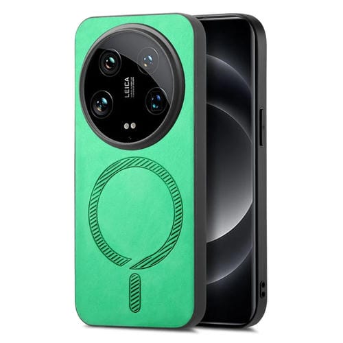 Funda Trasera De Pu Magsafe Retro De Color Sólido Ultra Para Xiaomi 14 (Verde)
