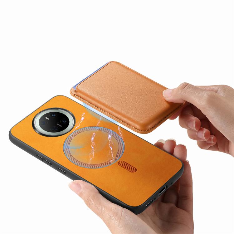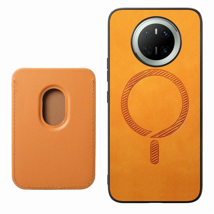 Funda Trasera PU para Huawei Mate 70 con Tarjetero Magsafe Retro (Amarilla)