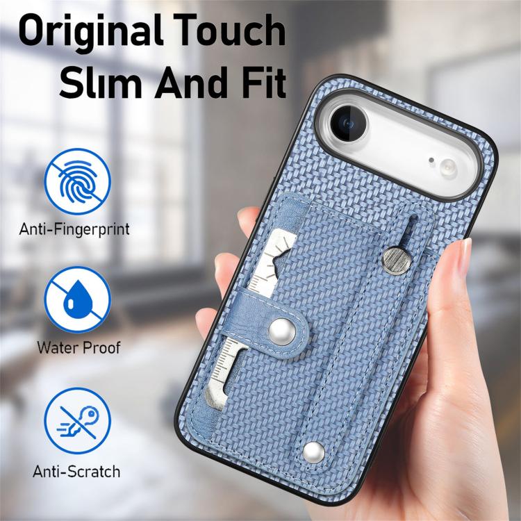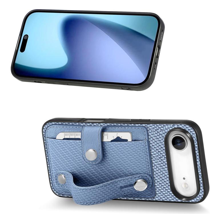 Funda trasera tipo billetera con soporte para tarjeta y correa para muñeca para iPhone Air, con cuchillo (azul)