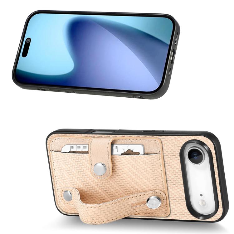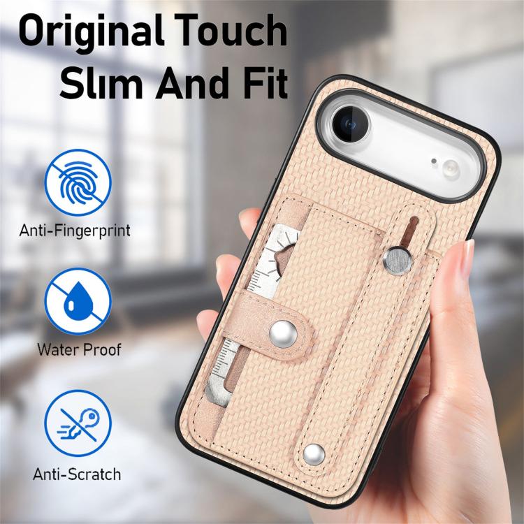 Funda trasera tipo billetera con soporte para tarjeta y correa para muñeca para iPhone Air, con cuchillo (caqui)