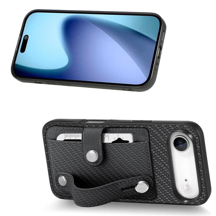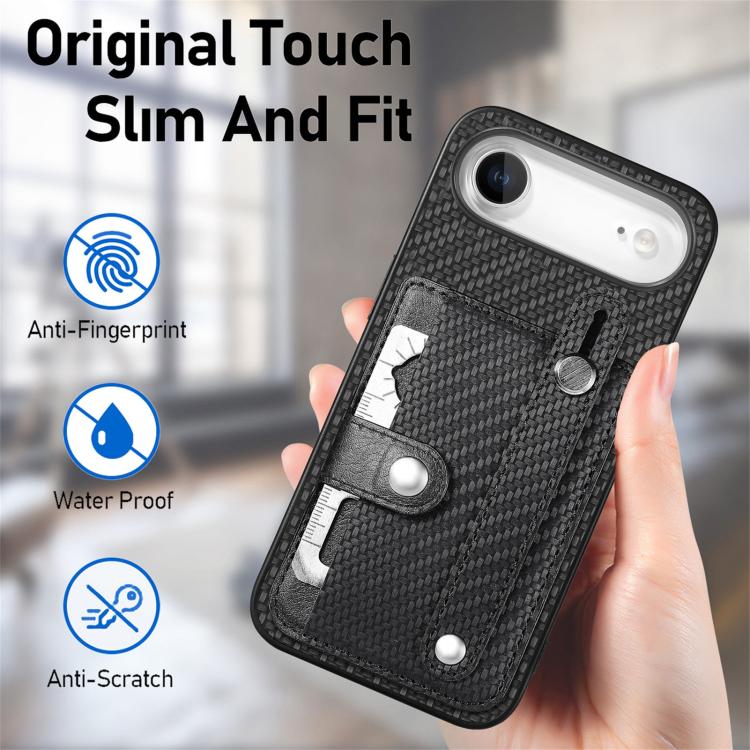 Funda trasera tipo billetera con soporte para tarjeta y correa para muñeca para iPhone Air, con cuchillo (negro)