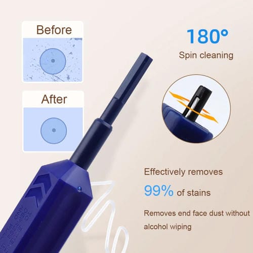 La Herramienta de Limpieza facial de extremo de fibra tipo prensa es un dispositivo diseñado para la Limpieza eficiente y precisa de Conectores de fibra Óptica, específicamente compatible con LC y MU. Fabricada con materiales resistentes y antiestáticos, esta Herramienta facilita la eliminación de Polvo y partículas sin necesidad de utilizar alcohol, lo que optimiza el mantenimiento y prolonga la vida útil de los Conectores. Su diseño liviano y ergonómico permite un manejo cómodo y práctico, mientras que su mecanismo giratorio asegura una Limpieza exhaustiva y rápida en cada uso. Con una capacidad para realizar más de 800 Limpiezas, es una solución confiable para Técnicos y usuarios que reparan por cuenta propia en entornos de fibra Óptica.