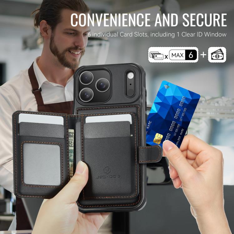 JEEHOOD J09 - Funda de cuero con hebilla para iPhone 17 Pro Max, estilo magnético, RFID, MagSafe (negro)