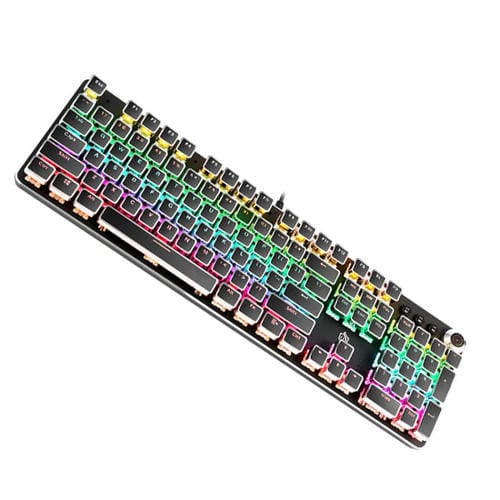 El Teclado K820 Retro Punk con 104 teclas y eje verde es un dispositivo mecánico diseñado para usuarios que requieren alta precisión y durabilidad en sus equipos de entrada. Compatible con sistemas que soportan Conexión USB, este Teclado se destaca por su Panel de Metal esmerilado que proporciona resistencia al desgaste y una estructura robusta. Su función principal es ofrecer una experiencia de escritura y Juego fluida y cómoda, gracias a su diseño ergonómico de teclas altas y bajas adaptadas al arco de movimiento natural de los dedos. Además, incorpora una retroiluminación de siete colores con 23 efectos de luz personalizables mediante Botones y perilla, permitiendo ajustar el brillo y crear ambientes visuales atractivos. El Cable trenzado de 1,6 metros con blindaje antiinterferencias garantiza una Conexión estable y duradera.