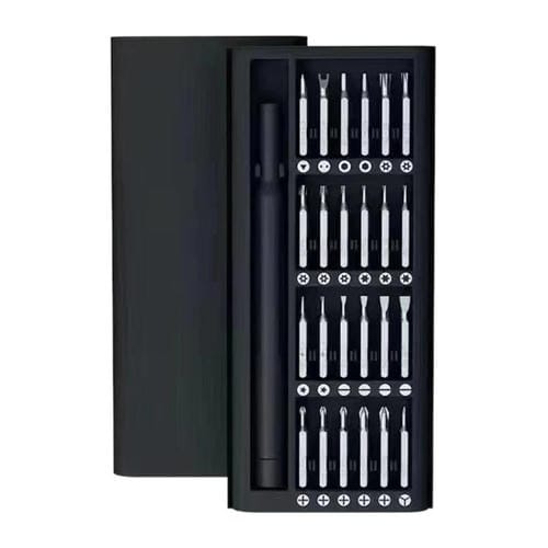 El Kit de destornilladores 25 en 1 es una herramienta de reparación de precisión diseñada para usuarios que requieren realizar mantenimiento o reparaciones en dispositivos electrónicos como Teléfonos Móviles, tabletas y Relojes. Este set incluye un mango ergonómico fabricado en material plástico que garantiza seguridad y eficiencia durante su uso, acompañado de 24 puntas de destornillador elaboradas en acero S2 con un proceso de aleación de aluminio anodizado, lo que proporciona resistencia al desgaste, propiedades antideslizantes y protección contra la oxidación. Su diseño compacto y ligero facilita el manejo en espacios reducidos y permite realizar tareas de reparación con precisión. Además, es compatible con la reparación de otros dispositivos electrónicos y electrodomésticos, ofreciendo versatilidad para distintos tipos de intervenciones Técnicas.