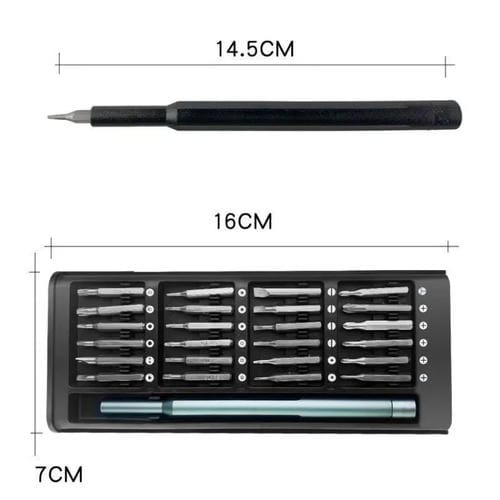 - Juego compuesto por 1 mango y 24 puntas de destornillador de precisión, diseño compacto y ligero, resistencia al sudor y a la oxidación