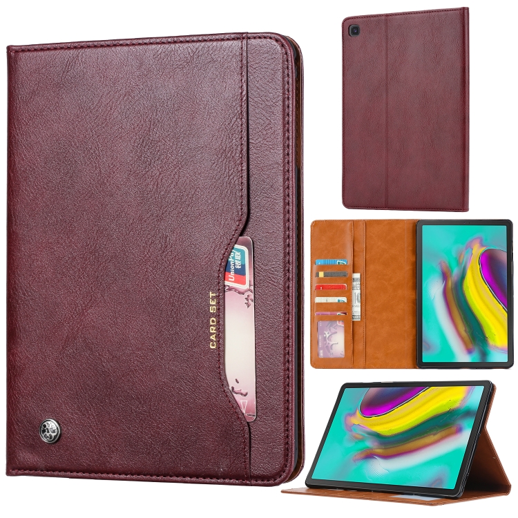 Funda de Cuero Knead Skin Texture para Galaxy Tab A 10.1 (2019) T515/T510 con Soporte y Ranuras (Rojo Vino)