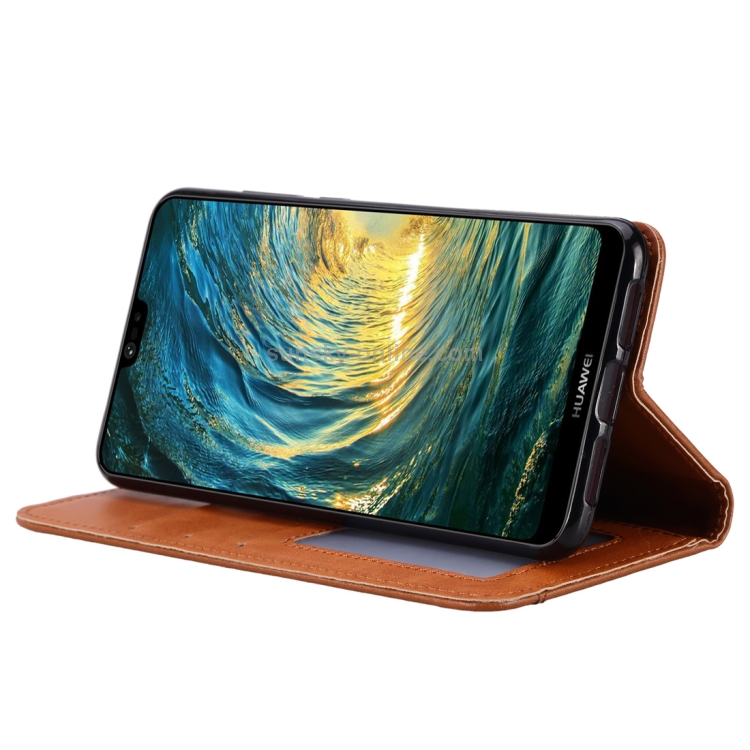 Funda de Cuero con Tapa Horizontal Knead Skin Texture para Huawei P30 con Marco, Soporte y Billetera (Marrón)