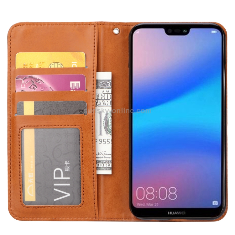 Funda de Cuero Knead Skin Texture para Huawei P30 Lite con Tapa Horizontal, Marco de Fotos, Soporte, Ranuras para Tarjetas y Billetera (Rojo)