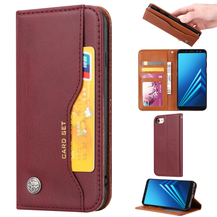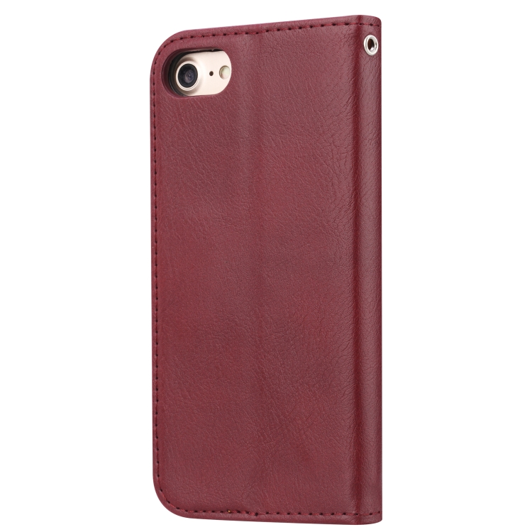 Funda de Cuero Knead Skin Texture con Tapa Horizontal para iPhone 6 6S 7 8 con Marco Fotos Soporte Ranuras Tarjetas Billetera (Rojo Vino)