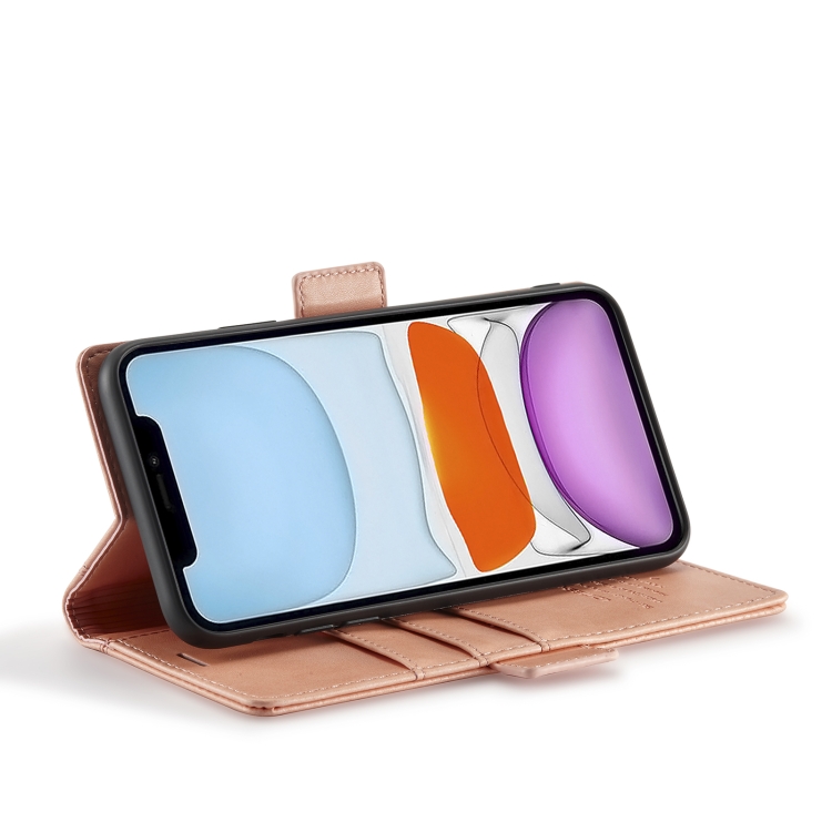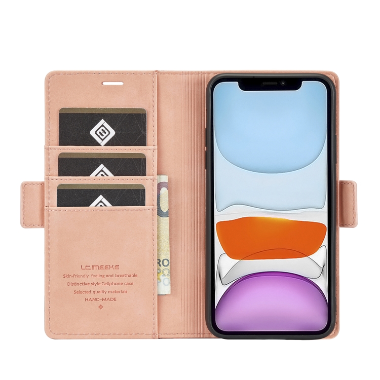Funda de Cuero Horizontal Flip Lc.Imeeke para iPhone 11 Pro Max con Hebilla Magnética, Soporte, Tragamonedas y Billetera (Oro Rosa)